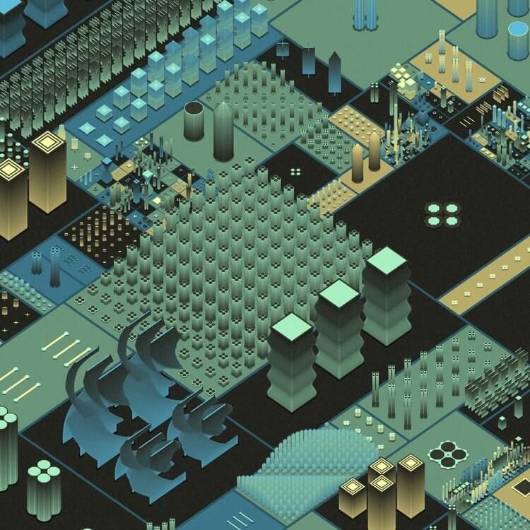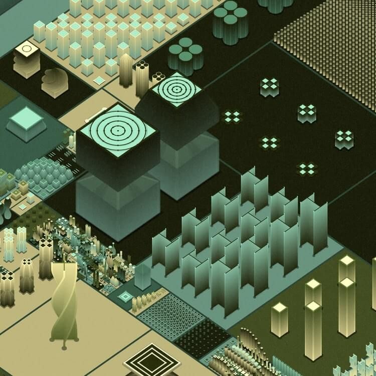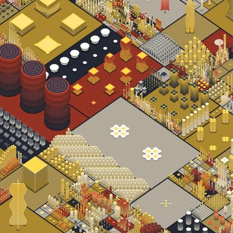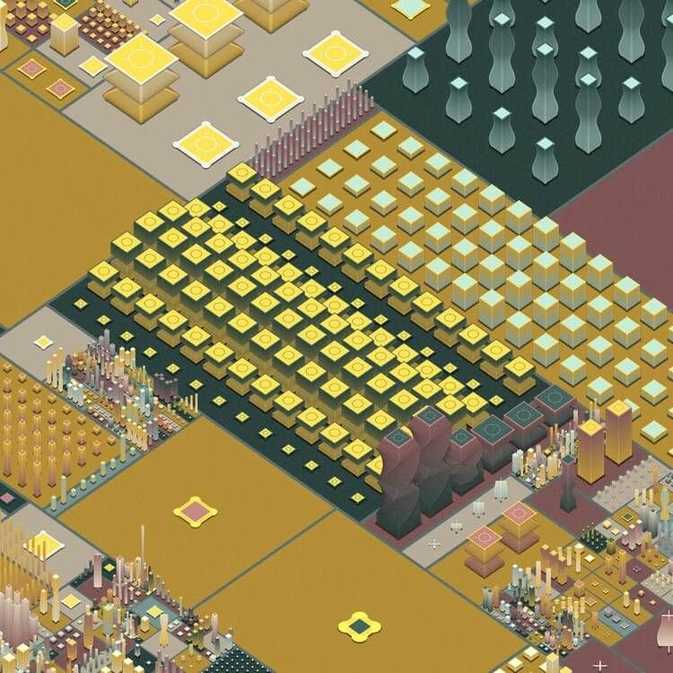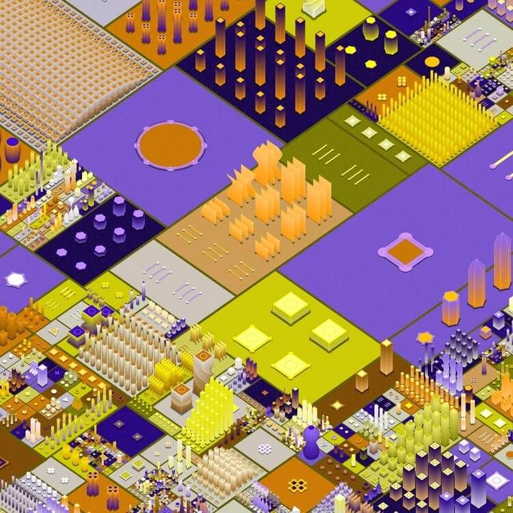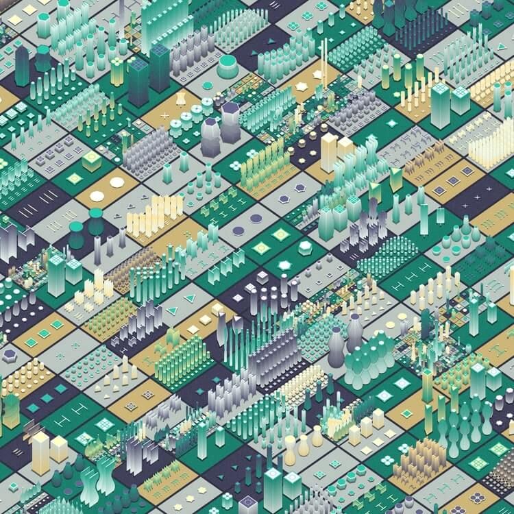 With every piece, a world of complex geometries and colors evolves, drawing the viewer into a futuristic cosmos of order and chaos.