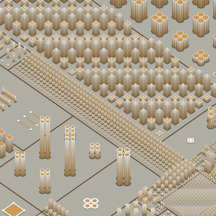 Crafted through intricate JavaScript and P5.js coding, each piece is a technical marvel, with 24 unique packing functions, 39 growth techniques, and 4 grid generation methods. The technical depth behind each piece mirrors the complexity of recursion itself, where each pattern grows with impeccable precision.